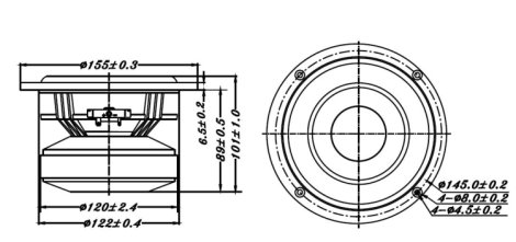 产品描述 : 大型铁氧体磁回系统, Underhung设计 T柱上置短路环, VC = 38mm 极低的二/三次失真 长冲程 高功率承载设计 Xmax = 6mm 高频段的自然滑落,利于分音器的设计。 适用箱体建议 : 二音路设计案, 可参考 SUG2-22